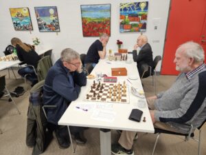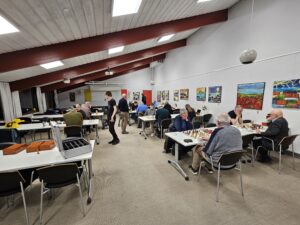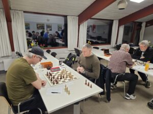 Kl. 19:00 gik de udsatte partier i gang, mens vi inde ved siden af spillede lidt hjerne-arm skak og Hnefatavl.